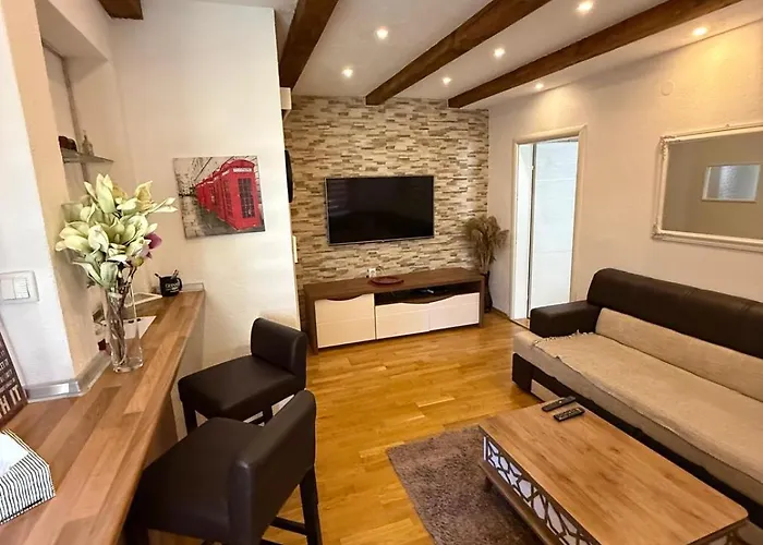 Stan U Centru Lägenhet har vardagsrum och sitthörna med luftkonditionering. Gästerna kan också njuta av utsikten över gatan. För att garantera din komfort finns en dusch på det här boendet. I badrummet finns dessutom hårtorkar, badlakan och handdukar.